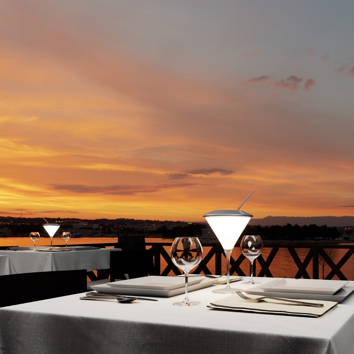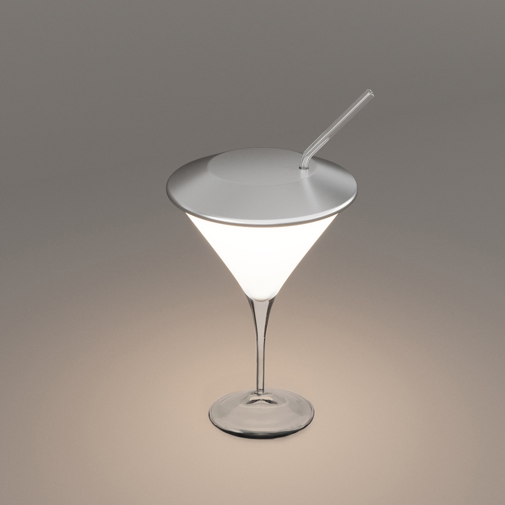 Lampada da tavolo a batterie ricaricabili con sistema TOUCH realizzata in vetro Italiano Bormioli e alluminio che riproduce le forme originali della storica coppa Martini. Le batterie garantiscono 7 ore di luce calda 3000K con ben 200lm di flusso luminoso, si ricaricano tramite cavo USB e sono facilmente sostituibili.